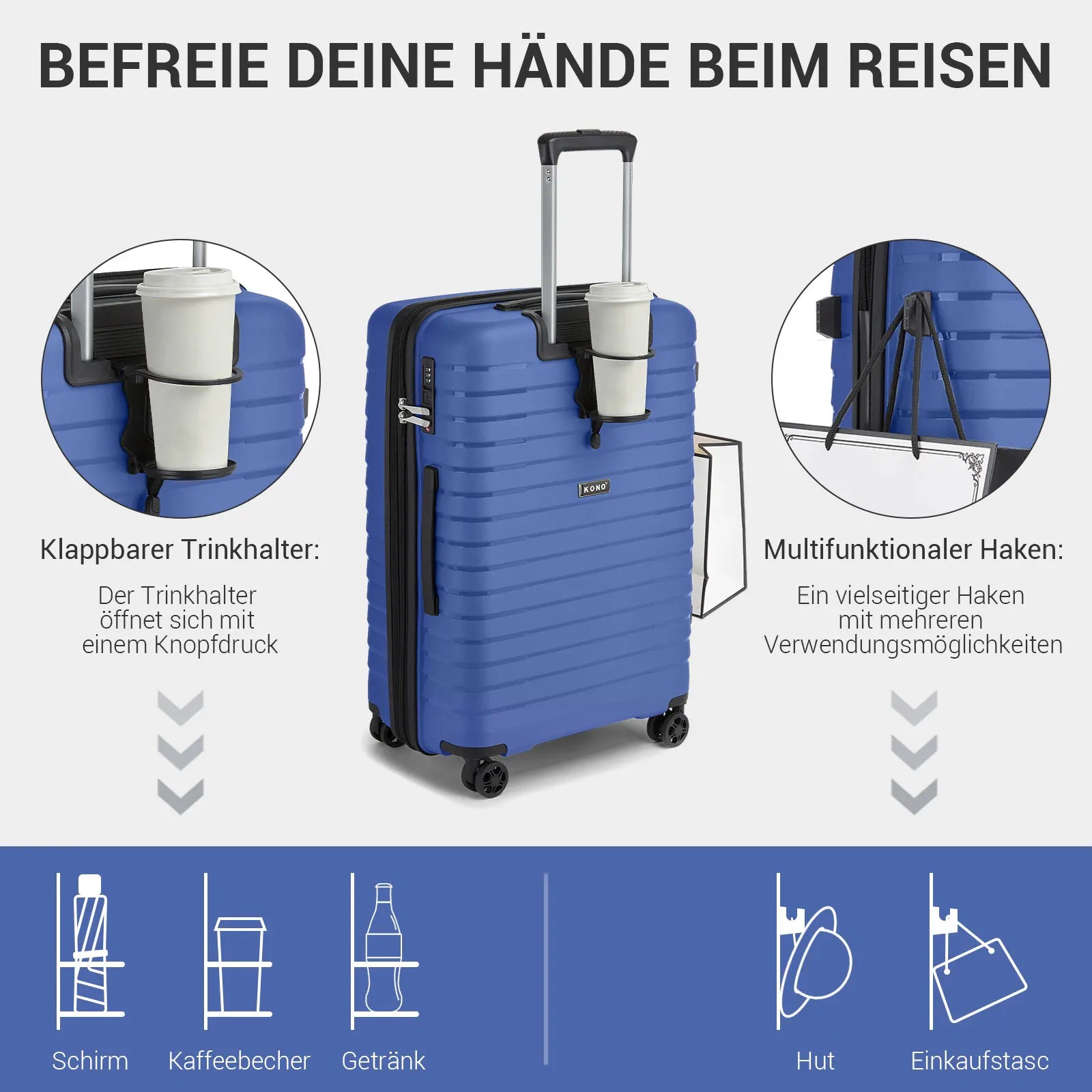 Valise cabine bleu rigide 53 cm